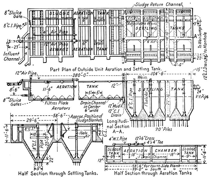 | 265. The Process. 266. Composition. 267. Advantages and Disadvantages. 268. Historical. 269. Aëration Tank. 270. Sedimentation Tank. 271. Reaëration Tank. 272. Air Distribution. 273. Obtaining Activated Sludge. 274. Cost. | 465–479 |