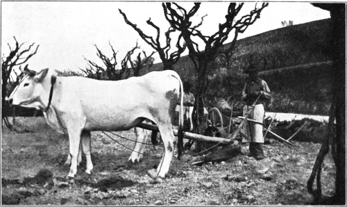 Noch intensiver vermochte man den Landbau zu betreiben, als zu diesen unfreien Hörigen als ersten männlichen Arbeitern die Zugkraft des zunächst bloß zur Milch- und Fleischgewinnung vom Manne gezüchteten Rindes hinzukam, das den als Fortbildung der Hacke erfundenen einfachen Hakenpflug zur Auflockerung des Bodens vor der Aussaat des Getreides durch den zum Ackerfelde bestimmten Boden zu ziehen hatte. Besonders ausgiebig konnte der durch Kastration dem menschlichen Willen gefügiger gemachte Stier als Ochse den Pflug ziehen, und mit seiner Mithilfe vermochte man immer größere Ländereien dem Anbaue der Nahrung spendenden ältesten Nutzpflanzen dienstbar zu machen.