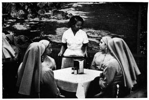 The restaurants—like the Black Muslim homes—strictly adhere to Moslem dietary laws. Muslim sisters glory in their ability to prepare dishes that satisfy the traditional eating habits of the American Negro without violating these laws.[20] The best example of imaginative Black Muslim cooking is their famous bean pie, something of a gourmet’s delight in the Negro community. Negroes in New York have been known to come to Harlem from miles around just to buy a bean pie for the family table. The restaurants also serve as business headquarters for the movement; they are the distribution centers for Black Muslim newspapers and other periodicals, the place where one is invited to have a talk with a Black Muslim leader. Temple Number Seven Restaurant at 116th Street and Lenox Avenue in Harlem is where Minister Malcolm X holds forth: he can be seen there almost any time conducting the financial affairs of the movement and holding press conferences. Then, on a sign from one of his assistants, Malcolm bounds out of the restaurant to conduct temple service at Temple Number Seven, half a block away.