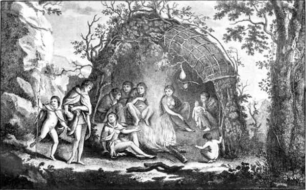 Am 20. Dezember suchte Herr Banks in Begleitung des Doktors das Dorf einiger feuerländischer Familien auf, das sich nach dem Bericht unserer Leute etwa zwei Meilen landeinwärts befinden sollte. Als sie sich dem Dorfe näherten, kamen ihnen zwei Feuerländer im Sonntagsstaate entgegen und begrüßten sie mit lautem Freudengeschrei. Dann geleiteten die Feuerländer ihre vornehmen Gäste in das Dorf, das auf einem waldigen Hügel aufgebaut war und etwa aus fünfzehn äußerst primitiven Hütten bestand, die die Gestalt großer Bienenkörbe hatten. Von Hausgeräten war hier nichts zu sehen. Eine Rasenbank vertrat die Stelle eines Bettes und der Stühle, die Blase irgendeines Tieres diente als Wasserbehälter, ein Handkorb und ein Ranzen bildeten den ganzen Reichtum dieser Leute. Der ganze Stamm, Männer und Weiber, jung und alt, zählte kaum fünfzig Personen. Ihre Hautfarbe war eisenrostartig. Die Männer sind bis zu 5 Fuß 10 Zoll groß und in Bewegung und Haltung vierschrötig, die Weiber sind bedeutend[S. 7] kleiner. Die Kleidung besteht aus dem Felle eines Seehunds oder eines Guanicoes, das ungegerbt über die Schulter geworfen wird. Die Männer tragen das Fell offen; die Weiber, denen ein kleiner Lappen als Feigenblatt dient, binden es mit einem Riemen um den Leib. Obwohl Männer wie Weiber sonst ganz nackt gehen, so bemalen sie doch ihr Gesicht mit weißen, grellroten und schwarzen Figuren und Streifen und tragen am Arm und an den Fußgelenken Armbänder aus kleinen Muscheln und Knochen. Die liebe Eitelkeit ging so weit, daß sie sogar Glaskorallen den Messern und Beilen vorzogen.