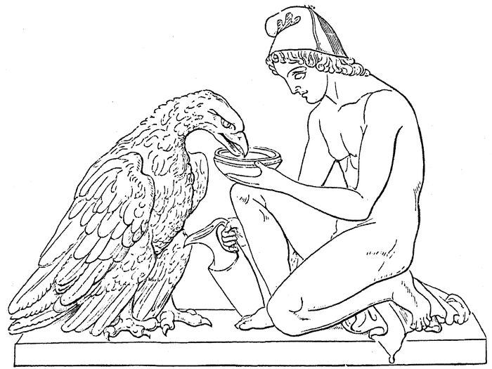 We have already incidentally mentioned most of the seers of antiquity—Melampus, the son of Amythaon, who figures in Argive legend; likewise Amphiaraüs, Tiresias, and Calchas. Concerning Tiresias, we may remark that the ancients ascribed to him a fabulous age, extending over seven or even nine generations; so that he was thus a witness of all that happened to Thebes, from the foundation of the city to its destruction by the Epigoni. Like all celebrated soothsayers, he was acquainted with the language of birds, and could penetrate the most hidden secrets of nature; on which account he enjoyed up to his death an ever-increasing reputation among the Thebans. We have already related how, in extreme old age, when his native city could no longer withstand the assaults of the Epigoni, he experienced the bitter lot of having to take refuge in flight, and at length succumbed beneath the hardships of the journey. In the second century A.D. his grave was still shown in the neighbourhood of Haliartus.