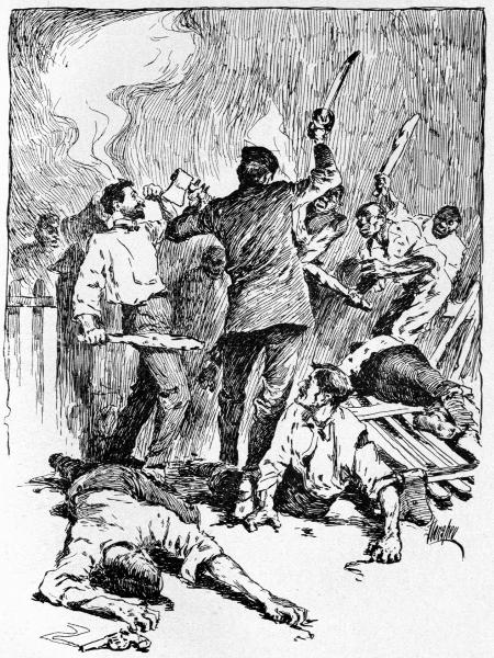 Soon many seafaring men were seen moving among the most excited of the mob, saying as they passed from one group to another, “It’s not true! You know the Dunlaps too well!” “Keep quiet, it’s a lie!” “Dunlap offered a reward for the arrest of the villain; it can’t be as the papers say!”