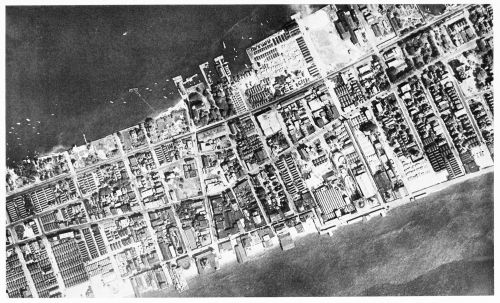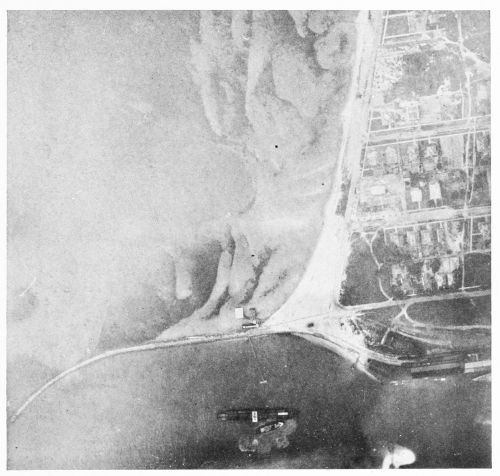 Only a few photographs are necessary to show how valuable to the architect, the construction engineer, the city planner, or the landscape gardener the air photograph, both vertical and oblique, is destined to become. Pictorial records of progress in the construction of buildings, bridges, ships, canals, reservoirs, etc., that partake also of the nature of ground plans, as do air photographs, furnish an admirable means of study and comparison. No photograph of the great shipyards at Newport News taken from the ground would show the relation of the shops and drydocks to the deep-water approaches as does Figure 7. Figure 8 gives an unusually comprehensive idea of the location, magnitude, and construction of Hell Gate Bridge; and Figure 10, Rockaway Beach, now a densely populated town where a few years ago was a barren strip of sand, suggests that photographic records of construction in rapidly growing communities where changes are being made in streets, railroads, and buildings, will come to be a part of the equipment of the city engineer and architect.