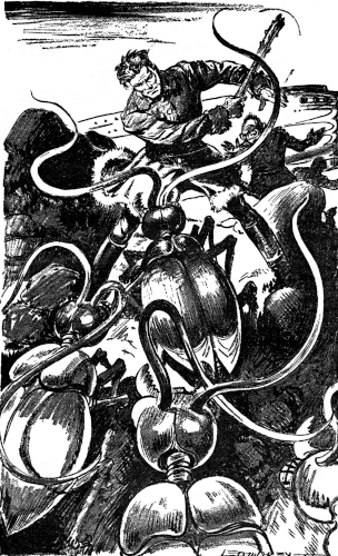 "I'm—I'm all right," he gasped. "Let's get on before more of them come." He smiled twistedly. "And thanks for the favor. I guess I wasn't much help."