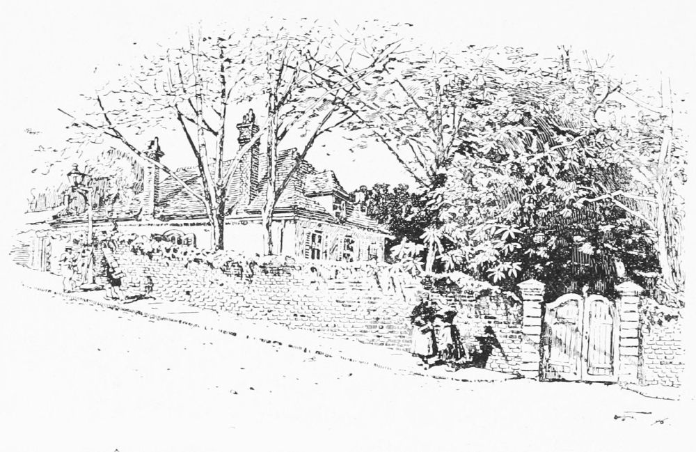 On October 30th, 1852, Thackeray set sail for the United States, where he remained until the spring of 1853. He lectured in various towns—New York, Philadelphia, Baltimore, Charleston, and Richmond amongst others. Upon his return to Europe he made a very short stay in London, and then proceeded to Switzerland, where the story of “The Newcomes” was, according to his own statement, “revealed to him somehow.” Much of the novel was written abroad while its author was travelling in Germany, Switzerland, Italy, or staying at the Château de Brequerecque at Boulogne, where he is said to have evolved the noble figure of Colonel Newcome. The Château de Brequerecque lies pleasantly nestled in trees and shrubberies on the outskirts of the town, and is surrounded by a high wall screening it from public gaze. “The Newcomes” was completed at No. 36, Onslow Square, where Thackeray moved from Young Street in 1857. “The result of my father’s furnishings,” wrote Mrs. Richmond Ritchie of this residence, “was a pleasant, bowery sort of home, with green curtains and carpets, looking out upon the elm trees of Onslow Square. We lived for seven years at No. 36, and it was there he wrote the ‘Lectures on the George’s,{39} and the end of ‘The Newcomes,’ and ‘The Virginians,’ part of ‘Philip,’ and many of the ‘Roundabout Papers.’ His study was over the drawing-room, and looked out upon the elm trees.”