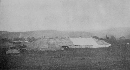 Sometime between 1820 and 1830 (circus annals tell not exactly the year), near what is now New York City, while a red-coated band blew forth a merry melody, a round-top tent swelled upward.[7] The parents of some of the present-day performers remember the day. It was the first cloth circus shelter erected in this country, and then what was formerly an open-air show assumed the dignity and importance of an under-cover performance. A crude enough affair it was, as compared with the perfection and finish of the modern circus. The flags and streamers and bunting which add grace and beauty waved no friendly greeting; the clamorous welcome of side-show orators and ticket sellers was wanting; no menagerie offered its accumulated wealth of curious and snarling beasts; human curiosity had not been awakened by the overpowering splendor and magnificence of a preliminary parade; there was a lack of sentiment and excitement and appeal to the senses; only din and confusion and broiling heat. From this mean beginning has come the marvellous circus of to-day, involving a business so extensive that few people possess anything but the vaguest conception of its magnitude, organization, and methods of operation.