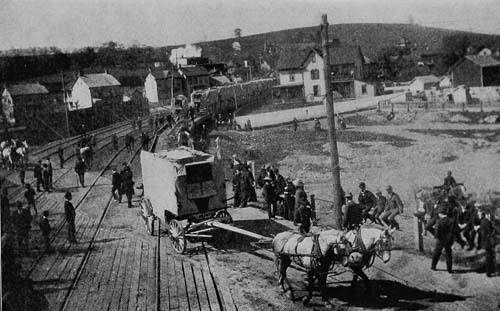 A quiet, unpretending village has already begun to assume an air of stir and animation. Festal circus day is at hand. Parents and children line the railroad approach and eagerly seize upon all points of vantage. Keen curiosity and joyful anticipation are depicted on every face. The railroad[30] yards are empty of rolling stock, and switchmen and engines are ready to receive and admit the travelling pageant and pilot it to a place convenient to its needs. No preparatory arrangement that human foresight can conceive has been neglected.