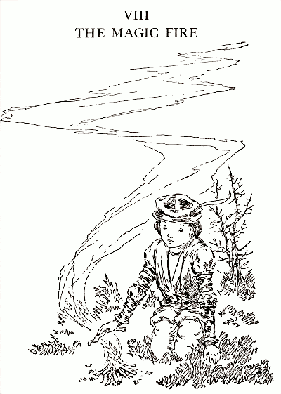 But after another very long time had gone by, and there were still no Princess Hilda and the cat, Prince Frank, when he went to take a fresh fagot from the pile, found that there was only that one fagot left of all that he and Hilda had gathered together. At this he was very much frightened, and knew not what to do; for when that fagot was burned up, as it soon would be, what was he to do to keep the fire going? There were no more sticks inside the ring, and the cat had told him that if he went outside of it, all would be lost.