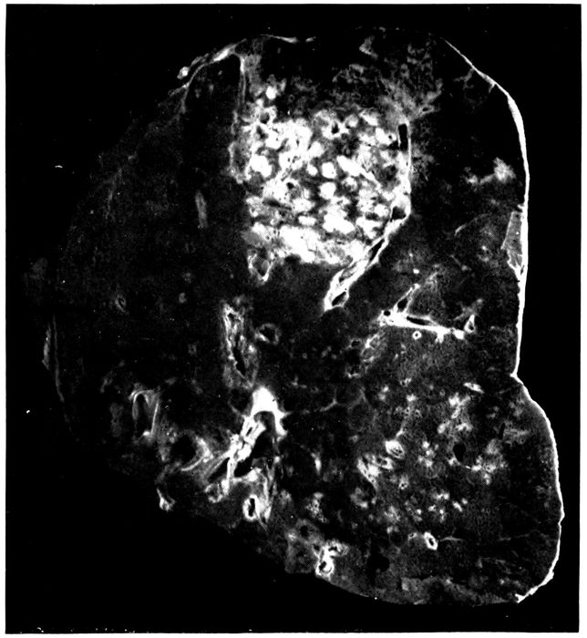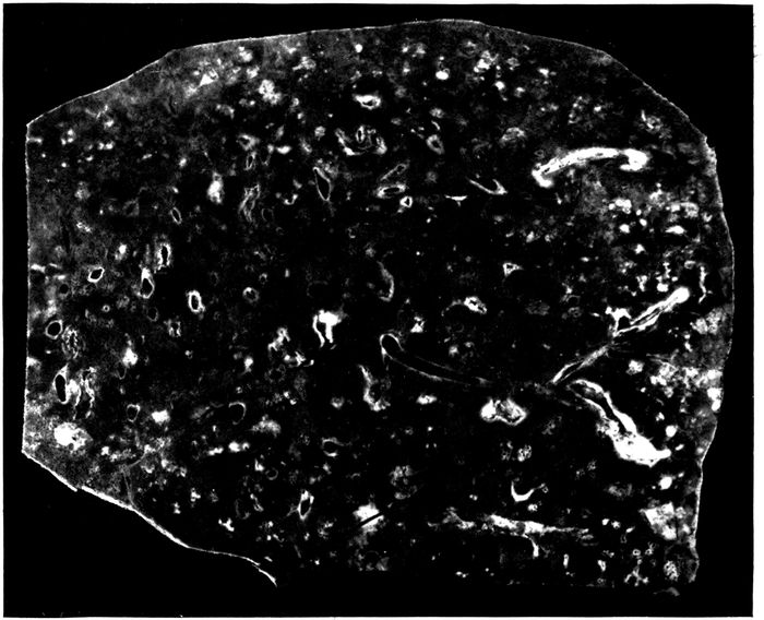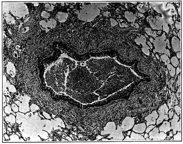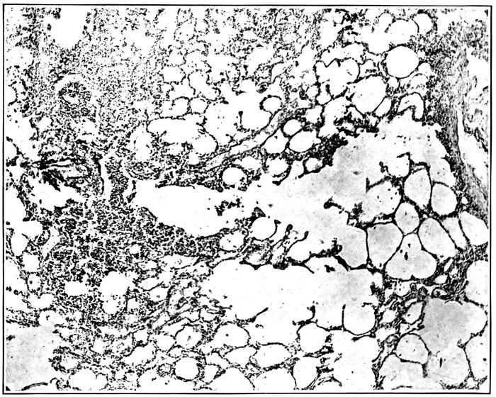 | Bronchitis, 142; Lobar Pneumonia, 154; Bronchopneumonia, 162; Peribronchial Hemorrhage and Pneumonia, 189; Suppurative Pneumonia with Necrosis and Abscess Formation, 199; Interstitial Suppurative Pneumonia, 209; Suppurative Pneumonia with Multiple Clustered Abscesses Caused by Staphylococci, 225; Empyema, Pericarditis and Peritonitis, 232; Bronchiectasis, 239; Unresolved Bronchopneumonia, 261. | ||