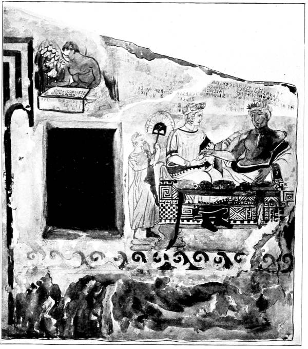 | 28 | Arnth Velchas and wife on couch. Picture in the Tomba dell’ Orco (After a coloured drawing in the Helbig Museum) | 36 |