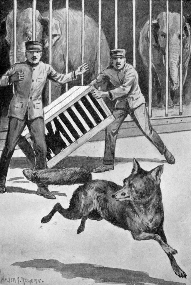 The next minute the big hippo bumped sharply against the fox cage. There was a crash, a splintering of wood, and Sharp Eyes sprang out. The silver fox was running away.