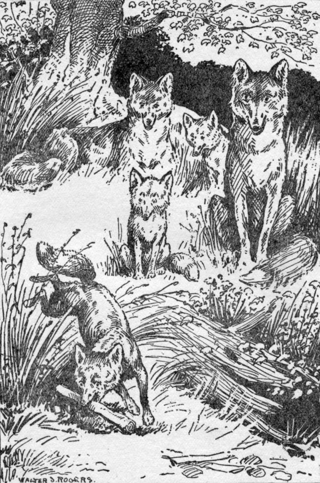 Away up in the North Woods lived a family of foxes. They had big, bushy tails, like a dust brush, and they wore furry coats. Some of these furry coats were of a reddish-yellow color, and some of them a sort of gray. The foxes had long sharp noses and sharp teeth, and they were very sly and cunning, as they had need to be.