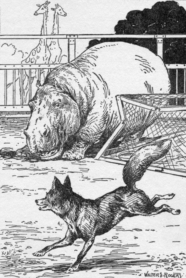 “Well, perhaps you are right,” said the hippo, after thinking about it and opening his mouth to catch a loaf of bread his keeper threw in. “Some animals like it here in the zoo, and others do not. For them there is one of two things to do—die or get out. I don’t want to see you die, Sharp Eyes, so I will help you get out.”