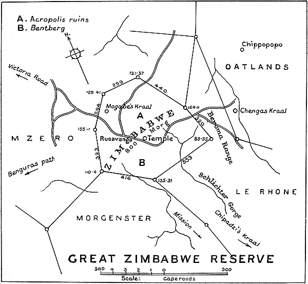 IN preparing this detailed description of the ruins of Great Zimbabwe—the first given to the world in modern times—the author has aimed at permitting the actual ruins themselves to relate their own story of their forgotten past unweighted by any consideration of the many traditions, romances, and theories which—especially during the last decade—have been woven concerning these monuments.