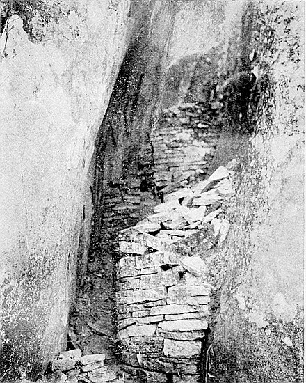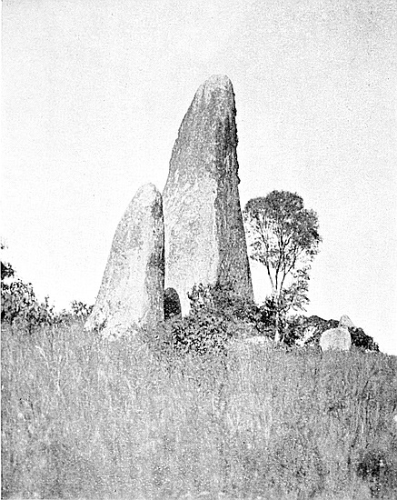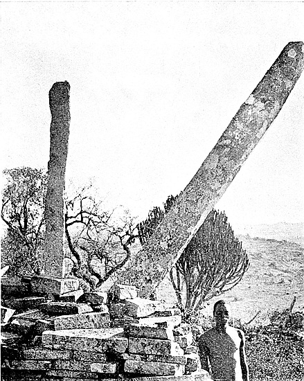 But Mr. Hall, who visited the Inyanga territory in May, 1904, now finds that the terraced slopes,[4] the so-called “slave-pits,” and the other remains, although “old,” are not “ancient.” That is to say, they date not from Himyaritic times, but probably from the eleventh or twelfth century of the new era, when parts of Rhodesia were reoccupied by large numbers of Moslem Arabs from Quiloa and their other settlements along the east coast. Hence, although the terraced slopes still form a connecting link between South Africa and South Arabia, the South Arabia here in question is that, not of pre-, but of post-Koranic times.
