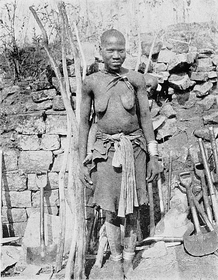Under such conditions it will naturally be asked, whence did the foreign intruders obtain their food supplies? The answer to this question is suggested in The Ancient Ruins, where it is pointed out (p. 208) that the auriferous reefs of the central Zimbabwe district, and generally of all the districts in immediate proximity to the fortified stations, show no traces of having ever been worked for the precious metal. “Possibly the reason for the ancients ignoring the gold-reefsxxxiv of this district [Zimbabwe] lies in the fact that the country round about is exceedingly well suited for agricultural purposes, the soil being rich and water plentiful, and all vegetable growths prolific and profuse. The large population of ancients, together with the enormous gangs of slaves, would naturally consume a vast quantity of grain, and this necessity would create a large agricultural class, who, for their own safety and for the protection of their crops and fruits, would naturally carry on their operations within such an area as could be safeguarded by the fortresses of Zimbabwe.”