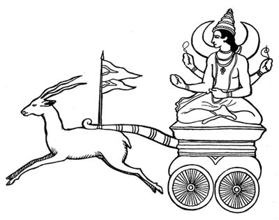 Thus spake the Poet, and verily only the gods had dared fall in love with Uttara. Surya, the God of the Sun, appeared in the morning in a blaze of golden flames, and at noon his rays became so ardent that Uttara had to run under cover to protect herself against his passion.