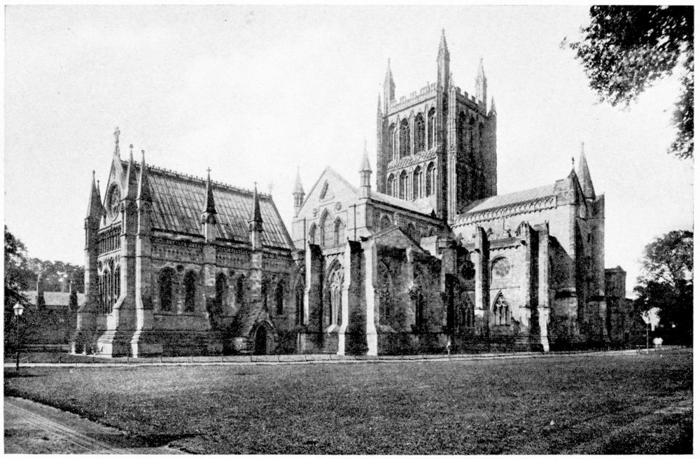 In the time of William Rufus all the Saxon cathedrals were being rebuilt on a larger scale. From this reign date the crypt of Worcester; crypt, arches of the nave and part of the transepts of Gloucester; the choir and transepts of Durham; and the choir and transepts of Norwich.