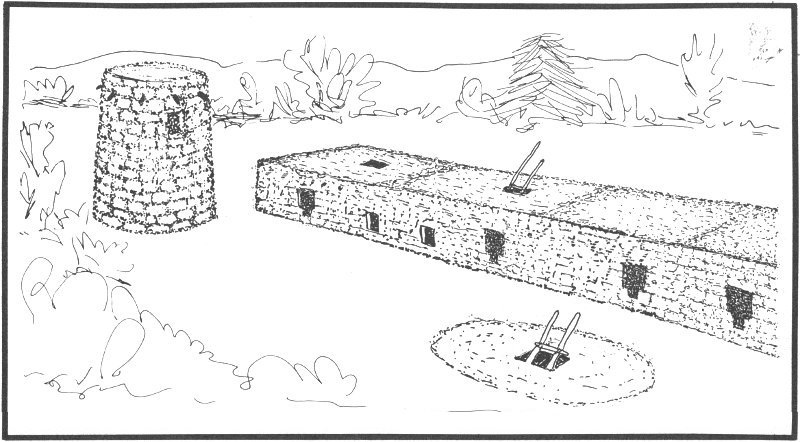 A palisade, or fence of posts and brush, partially enclosed the plaza of Two Raven House. Archeologists 14 speculate that such structures may have been windbreaks to shelter the plaza or even barriers to keep Anasazi turkeys in (or out) of the village. Although palisades have been discovered at only a few other sites in the Southwest, they may have been common features of Anasazi villages. Archeologists seldom have the time (or money) to spend stripping away the topsoil in search of the telltale rows of postholes.