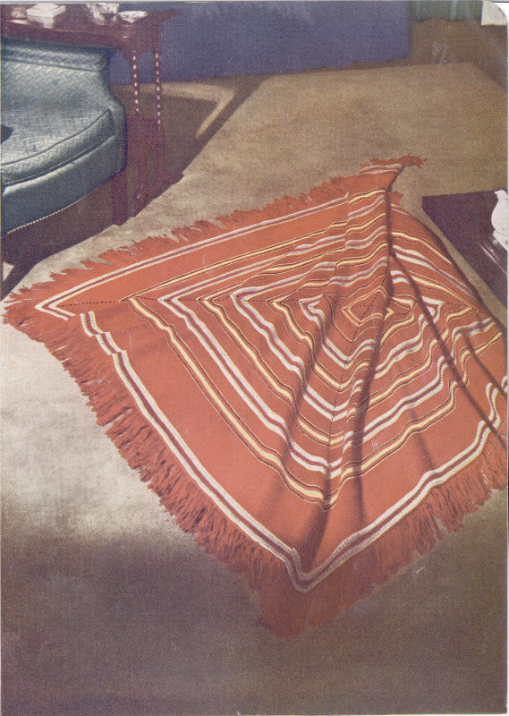 33rd to 37th Rows—Attach Scarlet, work same as 12th to 16th rows, cut yarn.