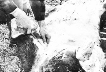 The animal must be killed as quickly and humanely as possible. In a slaughter house the cattle are driven into a knocking pen where they are stunned with a compression gun. On the farm a mechanical stunner is usually not available; therefore, stunning is best accomplished with a well-directed long or long rifle bullet from a .22-caliber rifle. As with the use of any firearms, normal precautions should be taken when stunning the animal.