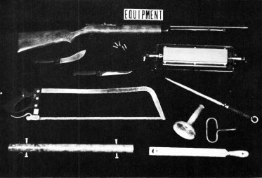 Elaborate and expensive equipment is not necessary but certain items are essential (fig. 1). The amount of equipment will depend on the slaughter procedure used. If the carcass is to be scalded rather than skinned, additional equipment will be needed (items 16 to 23). The following slaughter equipment is recommended: