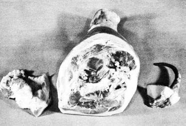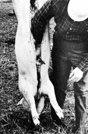 All the internal organs and the dressed carcass (fig. 58) should be examined carefully for any abnormalities or conditions that might affect the fitness of the meat for food. Usually a meat inspector or graduate veterinarian is the only person qualified to do this, and one should be present to inspect the carcass; however, under farm conditions, you may need to look for the obvious signs of disease or damage yourself. If any part of the viscera or carcass is questionable, you should obtain expert advice.