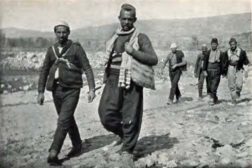 After the conference on Bigla Dagh, the voivodas, with their bands, separated, bound in different directions on various missions. Boris Sarafoff, with ninety men, dropped south from Bigla Dagh around Florina to convey news of the revolution’s end to certain other bands, and to gather arms from the peasants. The band were destined ultimately to return to Bulgaria, 120 miles away; but they were doomed to cover several times this distance, spending thirty-four days, on the march back to the free land.