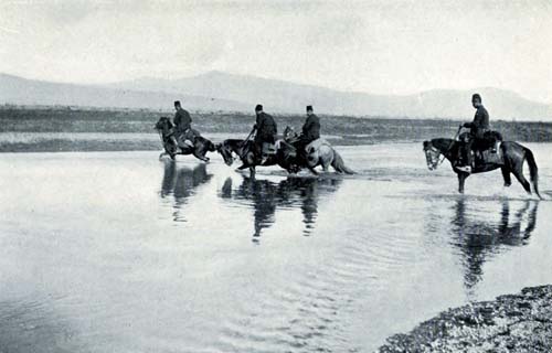 It had come to be known to the Turks that Sarafoff was making his way to the Bulgarian border; a reward was offered for his head, and cavalry patrols were sent out to intercept him. But it was not difficult to elude these, for the cavalry could not leave the roads; and it broke the monotony of the days in hiding to watch the patrols pass on the highways below.