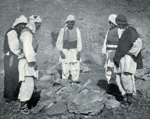 While waiting for Sarafoff, the band had been surrounded. The heights were a mass of broken boulders which afforded protection to their enemies as well as to the insurgents. Only one spot, to the south, was smooth and bare, and this space the Turkish commander took the precaution not to occupy, for two reasons. First, his men would have been picked off as fast as they filled it, and the sacrifice evidently did not appear to him to be necessary;[287] secondly, the opening acted as a bait for the hard-pressed insurgents, tempting them into the passage, on each side of which soldiers were massed in strong force. Sarafoff surmised that this was a trap, and, while realising the hopelessness of his position, chose to fight it out where the lives of the band would cost the Turks dearest.