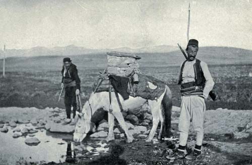 [9] Beside this record of the Turks stands a most dastardly deed on the part of the insurgents. Retiring from Nevaska a party of them laid a diligent trail to a spot in the mountains where they carefully prepared a lunch, poisoning the Mastica with arsenic, and leaving several bottles of it on the ground, to appear as if the band had left hurriedly at the approach of the Turks. This was told me in person by Tchakalaroff, the voivoda who led the band.