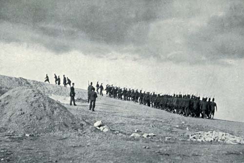 Until ten o’clock the Turks, certain of success, made no attempt to storm the position. They had taken up secure places behind rocks, and keeping up a desultory firing, they awaited the arrival of reinforcements, for which they had sent to a near-by town. The reinforcements came—for the sake of speed, in the shape of cavalry and artillery. The cavalry could not get into action because of the roughness of the ground, and was deployed as a patrol to prevent any other band which might be in the neighbourhood from coming to the relief of Sarafoff. The artillery could not be brought into close quarters for the same reason, but it was posted on an eminence quite within range.