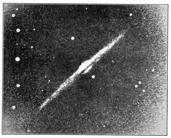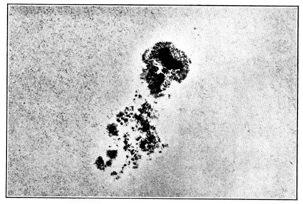 See has recently shown (Astr. Nach. No. 4341-42) that a particle moving through a resisting medium under the attraction of two bodies revolving round one another in circles may eventually be captured by one of them though originally under the domination of both. The argument consists in introducing the effect of a resisting medium upon [Pg 252] the motion in the space permitted by Jacobi’s integral, following Darwin’s examination of this space. In the actual case of nature the effect is much more complicated, and at present is not capable of exact solution for masses other than indefinitely small, even supposing circular orbits for the chief bodies. It may, however, explain the curious relation shown in the arrangement of the direct and retrograde movement of satellites. [Pg 253]