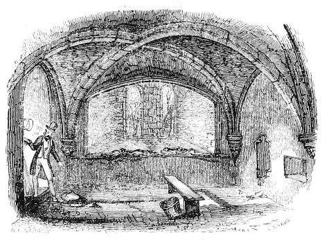 [222] A dark vaulted structure of two divisions connected with the Convent Garden, is all that remains of the old Abbey House, the residence of the Dennys; even the large mansion erected on its site, of which a view is given in Farmer’s History of Waltham Abbey, has been long demolished. In the Convent Garden, which is now tenanted by a market-gardener, there is a tulip-tree, remarkable equally for its magnitude and antiquity. The Abbey mills are still used as a cornmill.