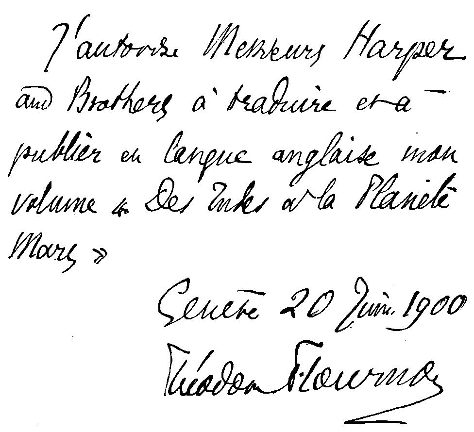 I authorize Messrs. Harper & Brothers to translate and to publish in the English language my book “From India to the Planet Mars.”