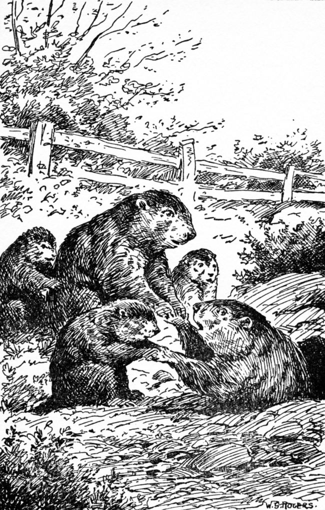 She would gather her paws under her, sit down on the smooth shale-rocks at the top of the hole, give herself a little push, and down she would go, landing in the big underground earth-room, where all the woodchucks of this one family lived.