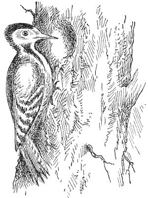 The woodpeckers are carpenters; they not only bore holes in trees in search of food, but they also chisel out deep holes in which to deposit their eggs and rear their young. They generally build their nest in May, selecting an old apple tree in the orchard; the boring is first done by the male, who pecks out a circular hole; as the work progresses, he is occasionally relieved by the female. They both work with great diligence, and as the hole deepens they carry out the chips, sometimes taking them some distance to prevent discovery or suspicion. The nest usually requires a week to build, and when the female is quite satisfied she deposits her eggs, generally six in number and of a pure white color.