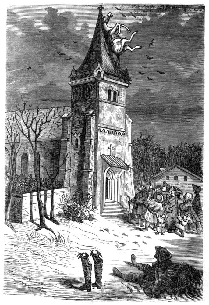 toppen av kirketaarnet og hang ned fra dette. Nu blev alt