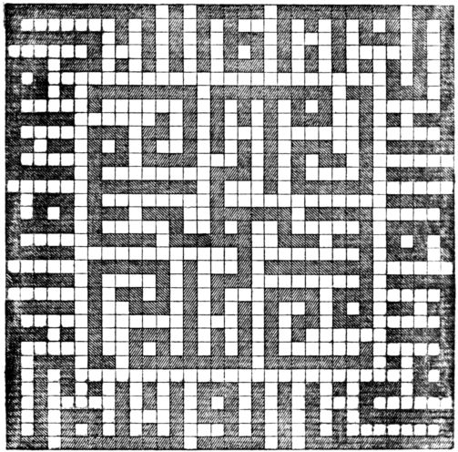 Now when Al-Rashid heard the tale of Ibn Mansur there fell from him somewhat of his cark and care but he was not wholly comforted. He spent the night in this case and when it was morning he summoned the Wazir Ja’afar ibn Yahyá the Barmaki, and cried to him, “O Ja’afar!” He replied, “Here am I! Allah lengthen thy life, and make permanent thy prosperity.” The Caliph resumed, “Verily my breast is straitened and it hath passed through my thought that we fare forth, I and thou (and Eunuch Masrur shall make a third), and we will promenade the main streets of Baghdad and solace ourselves with seeing its several places and peradventure I may espy somewhat to hearten my heart and clear off my care and relieve me of what is with me of straitness of breast.” Ja’afar made answer, “O Commander of the Faithful, know that thou art Caliph and Regent and Cousin to the Apostle of Allah and haply some of the sons of the city may speak words that suit thee not and from that matter may result other matter with discomfort to thy heart and annoyance to thy mind, the offender unknowing the while that thou art walking the streets by night. Then thou wilt command his head to be cut off and what was meant for pleasure may end in displeasure and wrath and wrong-doing.” Al-Rashid replied, “I swear by the rights of my forbears and ancestors even if aught mishap to us from the meanest of folk as is wont to happen or he speak words which should not be spoken, that I will neither regard them nor reply thereto, neither will I punish the aggressor, nor shall aught linger in my heart against the addresser; but need must I pass through 66the Bazar this very night.” Hereupon quoth Ja’afar to the Caliph, “O Viceregent of Allah upon earth, do thou be steadfast of purpose and rely upon Allah!”[111] Then they arose and arousing Masrur doffed what was upon them of outer dress and bag-trousers and habited themselves each one of them in garments differing from those of the city folks. Presently they sallied forth by the private postern and walked from place to place till they came to one of the highways of the capital and after threading its length they arrived at a narrow street whose like was never seen about all the horizons.[112] This they found swept and sprinkled with the sweet northern breeze playing through it and at the head thereof rose a mansion towering from the dust and hanging from the necks of the clouds. Its whole length was of sixty cubits whereas its breadth was of twenty ells; its gate was of ebony inlaid with ivory and plated with plates of yellow brass while athwart the doorway hung a curtain of sendal and over it was a chandelier of gold fed with oil of ’Irákí violets which brightened all that quarter with its light. The King Harun al-Rashid and the Wazir and the Eunuch stood marvelling at what they saw of these signs and at what they smelt of the scents breathing from the clarity[113] of this palace as though they were the waftings of the perfumed gardens of Paradise and they cast curious glances at the abode so lofty and of base so goodly and of corners so sturdy, whose like was never builded in those days. Presently they noted that its entrance was poikilate with carvings manifold and arabesques of glittering gold and over it was a line writ in letters of lapis lazuli. So Al-Rashid took seat under the 67candelabrum with Ja’afar standing on his right and Masrur afoot to his left and he exclaimed, “O Wazir, this mansion is naught save in the utmost perfection of beauty and degree; and verily its lord must have expended upon it wealth galore and of gold a store; and, as its exterior is magnificent exceedingly, so would to Heaven I knew what be its interior.” Then the Caliph cast a glance at the upper lintel of the door whereupon he saw inscribed in letters of golden water which glittered in the rays of the chandelier,