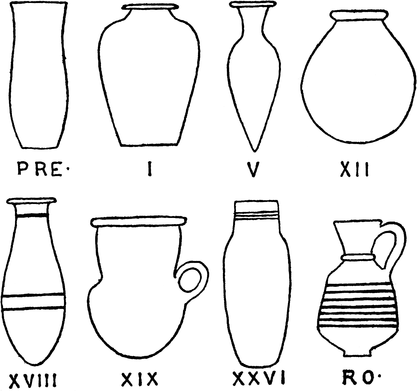 | Stone, 86; Pottery, 88; Textiles, 89; Wood, 89; Ivory, 91; Papyri, 93; Bead-work, 95; Stucco, 96; Gold, 98; Silver, 98; Copper, 99; Bronze, 100; Lead, 102; Iron, 102; Sorting, 102 | 85–104xiii |
