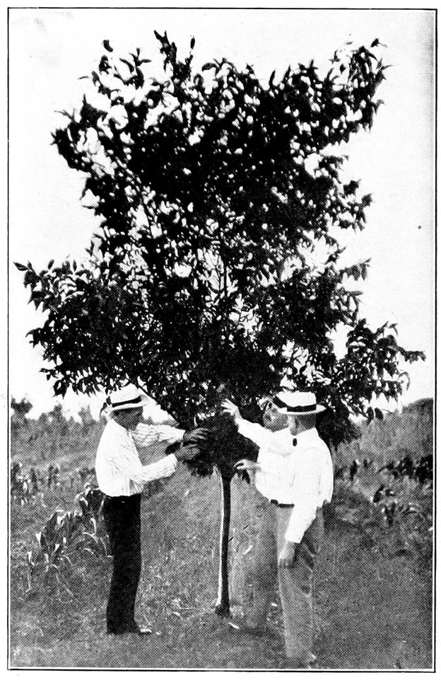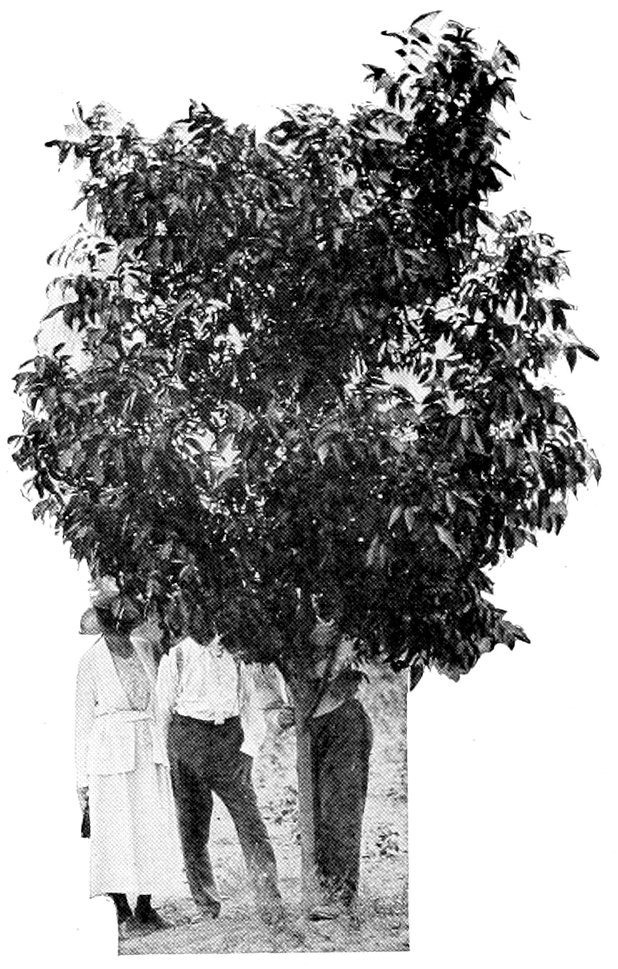 In the old bearing orchard the foliage was of the same healthy deep green color noted all over the plantation. But the best proof of their vigor was the fact that on many of these trees all the branches were loaded down with big nuts, nearly ripe.