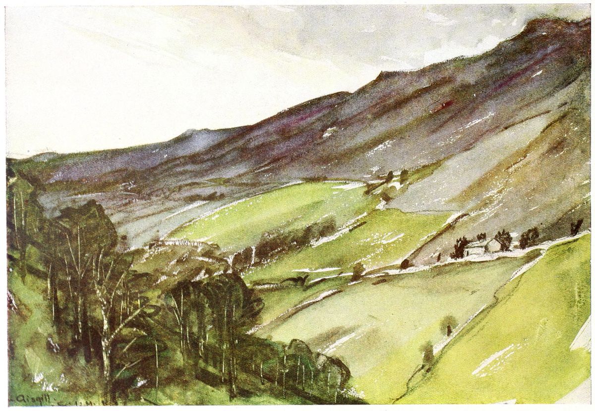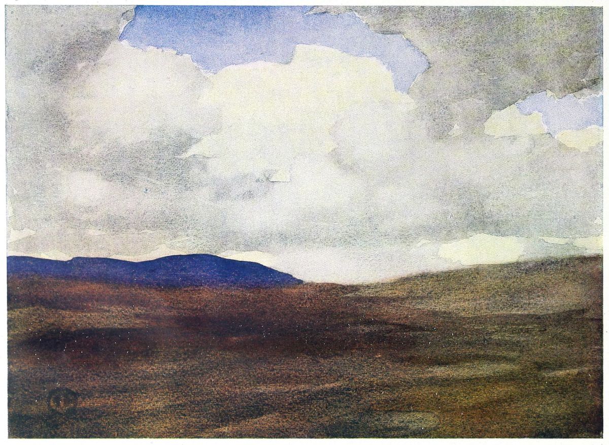 But to deal more minutely with the artists who are here represented, A. K. Brown (Plate XVI) must take precedence for his untiring services rendered to the promotion of the delightful art of water-colour painting in Scotland. Though born in Edinburgh in 1849, it has been in Glasgow that the greater part of his life has been lived, and with the art affairs of that city he has been most directly connected. His early{34} years were spent there as a calico-print designer, the artistic relationship of which soon led him to the higher ideal of landscape painting, the hills and glens as seen from a moorland road or mountain burn being the themes that most intimately allured him; yet not that aspect of the rugged inhumanity of the hills, but where man has trod, and where the shepherd’s whistle may be familiarly heard. It is, too, that sensation of friendliness felt amongst the hills that pervades his works. Treated with a methodical tenderness, they never exhibitionally assert themselves, but must be seen singly to convey their full attractiveness.