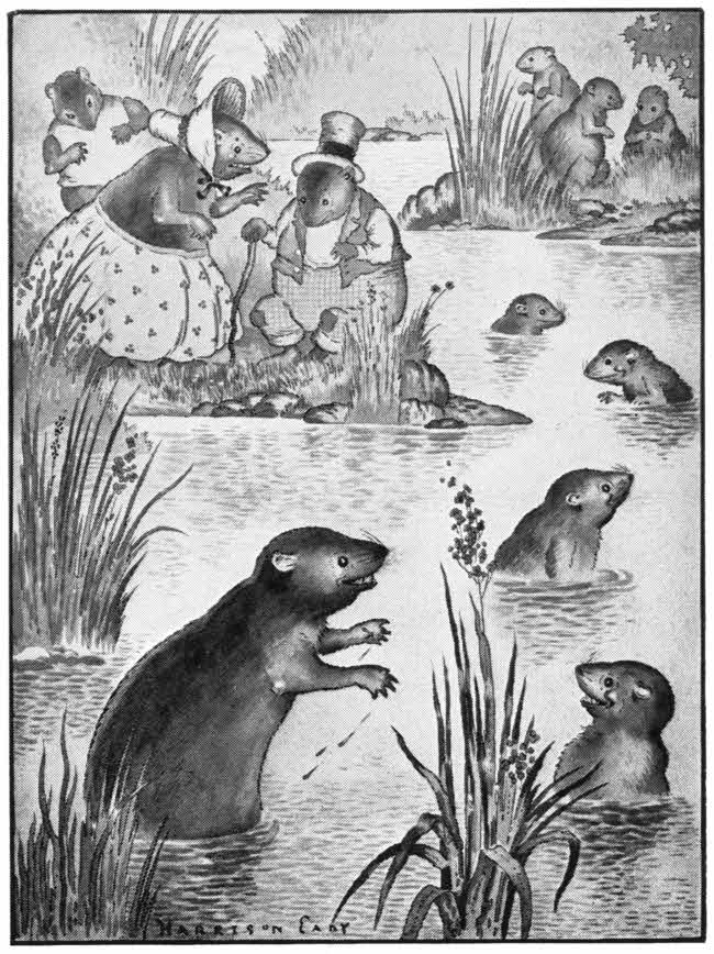 It was a beautiful summer evening, just at the hour of twilight, and the Smiling Pool was very beautiful, the most beautiful place that ever was. At least it seemed so to Tommy. In the bulrushes a few little feathered folks were still twittering sleepily. Over on his big green lily-pad Grandfather Frog was leading the frog chorus in a great deep voice. From various places in the Smiling Pool came sharp little squeaks and faint splashes. It was playtime for little muskrats and visiting time for big muskrats.