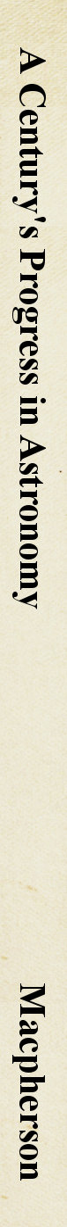 In astronomy, as in other sciences, the past hundred years has been a period of unparalleled progress. New methods have been devised, fresh discoveries have been made, new theories have been propounded; the field of work has widened enormously. In fact, the science of the heavens has become not only boundless in its possibilities, but more awe-inspiring and marvellous.