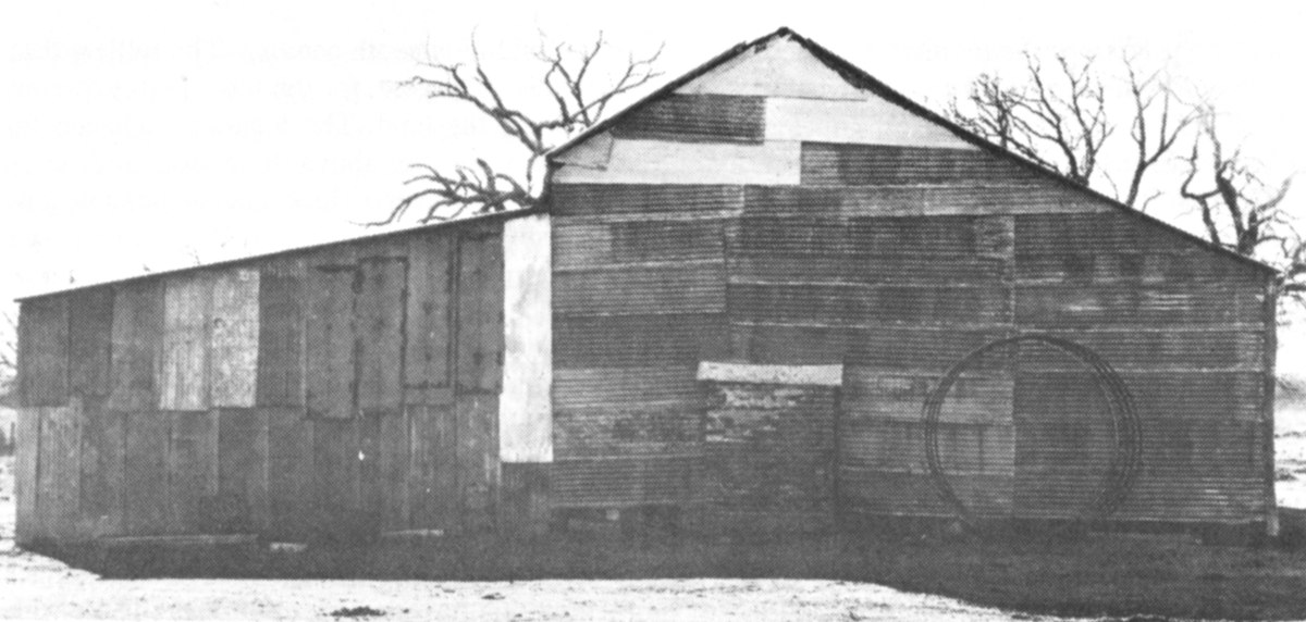 Fig. 9. Burleson Plantation house as seen today. This mid-nineteenth century upper class dwelling, although covered with sheet metal, is much larger than contemporary log cabins.