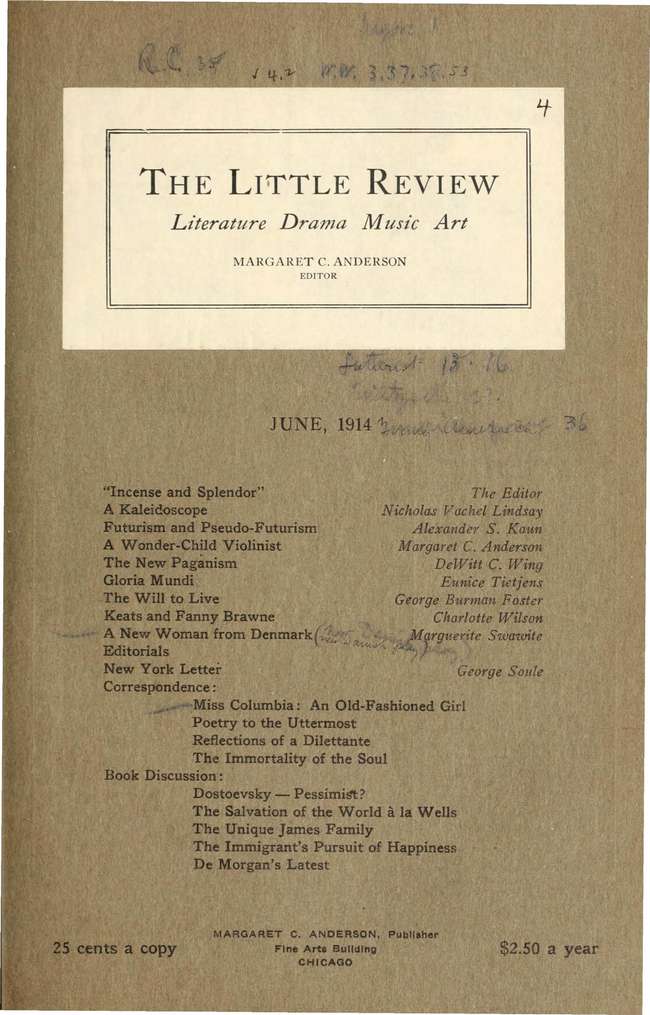Title: The Little Review, June 1914 (Vol. 1, No. 4)