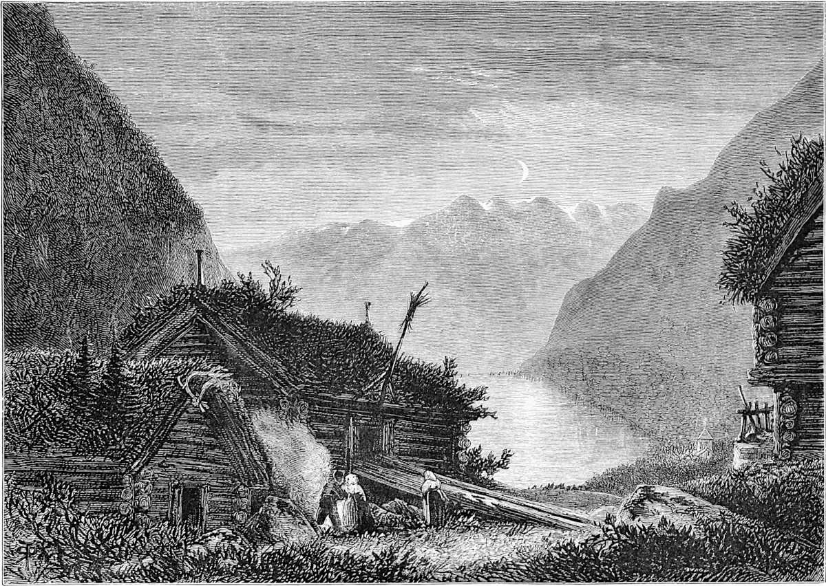The casual observer, looking at the map of Norway, would think it well populated, but a few years ago its inhabitants numbered hardly more than one-fourth those of London and its suburbs.[8] The names on the map frequently represent mere stations, farms, præstegaarden, or rectories, and villages are seldom seen. As in Scotland, the farmer takes the name of his land. In fact, Norway and Scotland are very closely allied to each other in many respects.