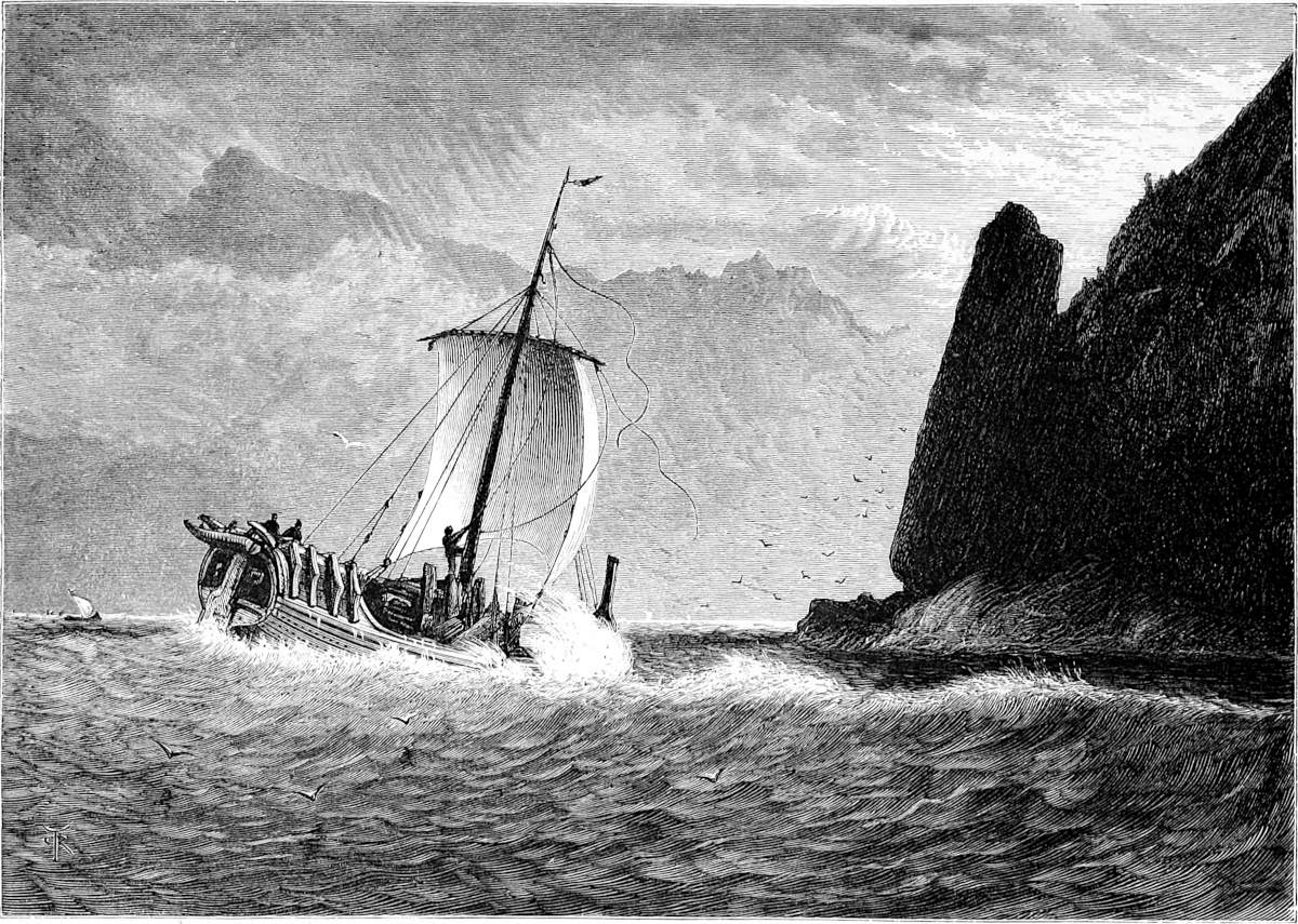 Little is said here of the cities of Christiania, Bergen, and Trondhjem, as our path lies in the open, the fjeld life, sæters, peasants, and sport. Our delight is to live out of the present century in fresh air and simplicity, where trolds might cross our path, where we might see the lovely Huldre, the beauty who had the unfortunate appendage of a cow’s tail, which, when exposed to view, was the signal for her to vanish into thin air, or where Odin and Thor had had great jagt, and killed bears, elks, gluttons, and wolves. The scenes we14 longed for were those in which pagan rites had been carried out with all the grandeur of mighty warriors and priests worthy of Valhalla; wherein Vikings, after deeds of valour, were laid low, and buried with great solemnity and becoming pomp in their own war vessels, with their treasure, their arms, and their hunting-gear about them, waiting for the call to glory.