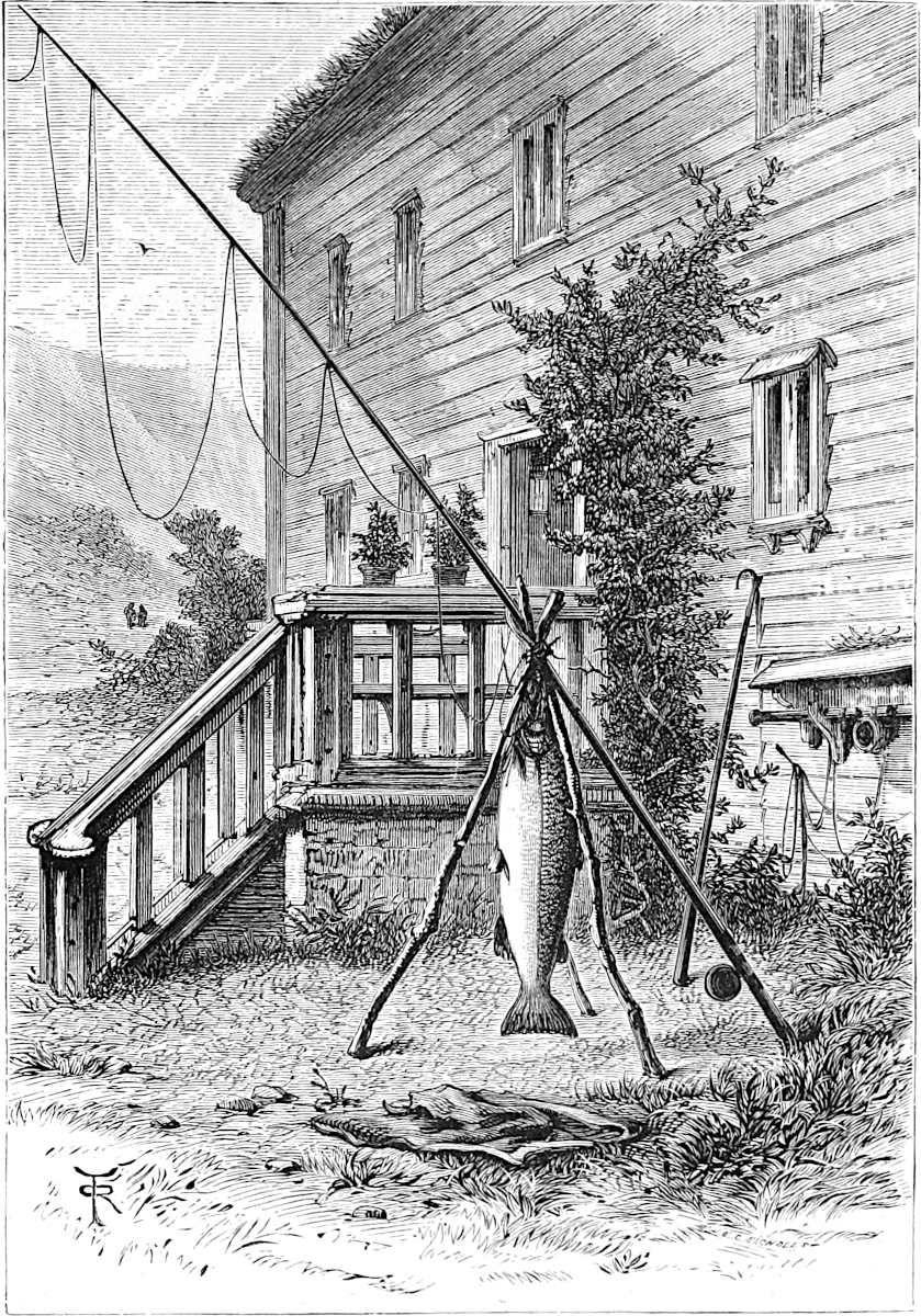 We were soon at the Victoria Hotel, with its quaint courtyard, with galleries running round it, excessively tame pigeons hopping and perching on all sides, and a reindeer head nailed to the woodwork. During the tourist season a large marquee is erected in the centre of this courtyard for tables d’hôte and extra meals. In the meantime we hurried to our rooms, longing to be out in a boat for a general view of the city. A few extras were, however, requisite before starting in real earnest, amongst which were two rifle slings. These had to be made, and are referred to here because they were the means of initiating us into one of the customs of the place. The leather slings were well made, but the price was most tolky (exorbitant). This led to a mild remonstrance, upon which the saddler wrote us a remarkable letter, which it is a pity we cannot present verbatim. It was to the effect that the saddler was happy to serve us well, but thinking we were English gentlemen, he imagined we should prefer giving English prices. However, if we merely wished to pay in accordance with the Norwegian tariff, it would only be so much, which was precisely the amount we did pay.