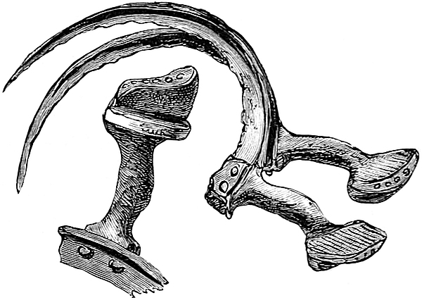 The lintels and carvings of the staburs, or store-houses, in Thelemarken have been already shown, but the most interesting specimens are found in churches, where the tortuous lines are full of originality and power of design. Serpents are ever-present and ever-varying, the museums being rich in specimens of this ecclesiastical class of work. Wood, and birch especially, is used for every kind of domestic utensil, and ornamentation is very generally introduced. Some of the old horse collars are beautiful, and are sometimes painted; tankards are richly carved; spoons profusely so; and on some occasions the bridegroom, if he be very expert, prepares a double spoon for the bride and himself, wherewith to eat their porridge simultaneously. Drinking bowls, salt-boxes, mangel stoks, are all carved; and this art is much encouraged by the long winter evenings.
